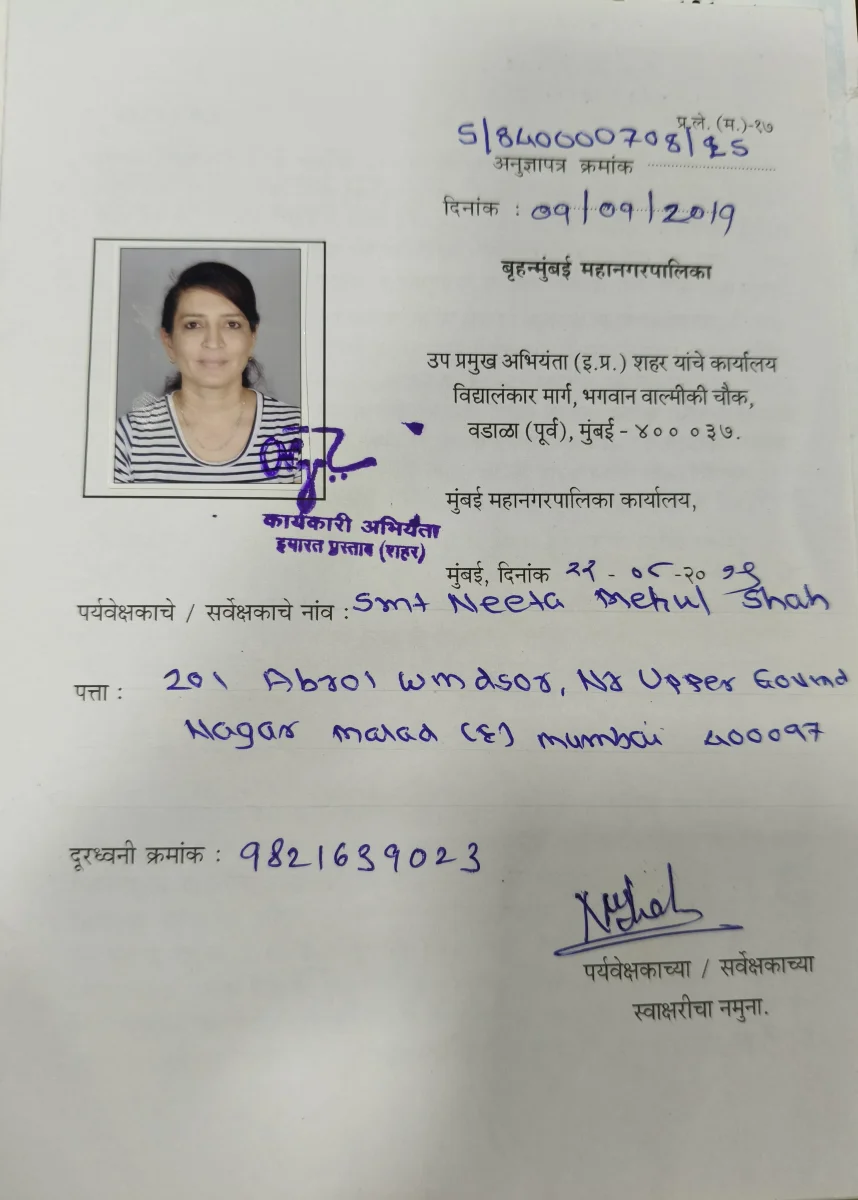 - Licensee surveyor of MCGM (LS- 840008140)