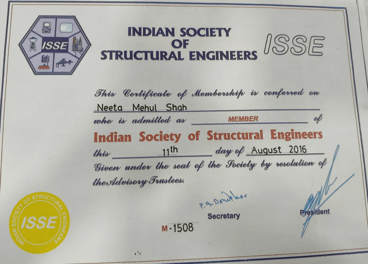 - Member of ISSE (Indian Society of Structural Society)
