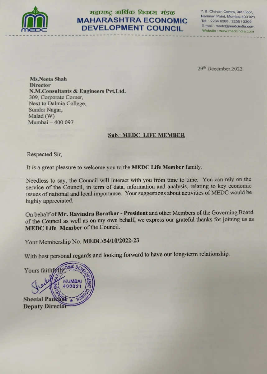- Licensee structural engineer of MCGM- STR/P/108